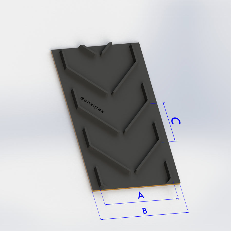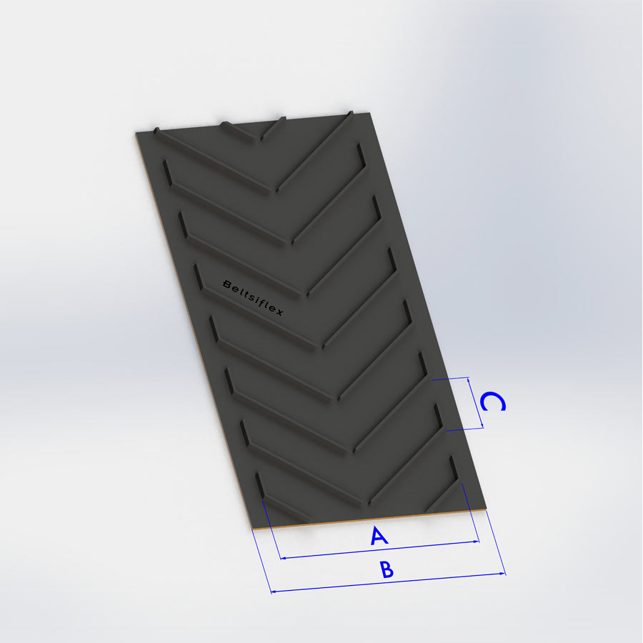 CHEVRON ALTURA NERVIO (mm) ANCHO NERVIO: A (mm) ANCHO BANDA: B (mm) TIPO BANDA PASO: C (mm)